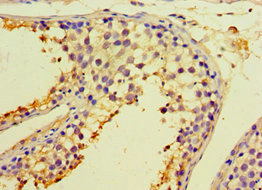 Immunohistochemistry of paraffin-embedded human testis tissue using CSB-PA856970ESR1HU at dilution of 1:100