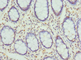 Immunohistochemistry of paraffin-embedded human colon cancer using CSB-PA857445ESR2HU at dilution of 1:100