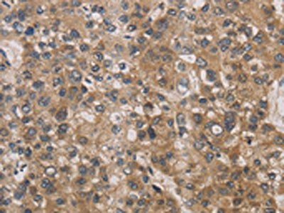 The image on the left is immunohistochemistry of paraffin-embedded Human liver cancer tissue using CSB-PA191736(DEGS1 Antibody) at dilution 1/30, on the right is treated with fusion protein. (Original magnification: ×200)