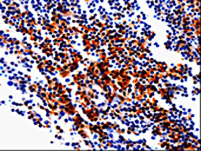 The image on the left is immunohistochemistry of paraffin-embedded Human tonsil tissue using CSB-PA838764(GDI1 Antibody) at dilution 1/20, on the right is treated with fusion protein. (Original magnification: ×200)
