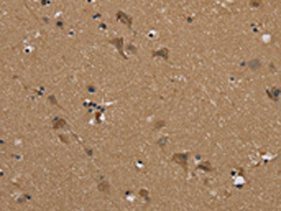 The image on the left is immunohistochemistry of paraffin-embedded Human brain tissue using CSB-PA484448(PUS10 Antibody) at dilution 1/45, on the right is treated with synthetic peptide. (Original magnification: ×200)