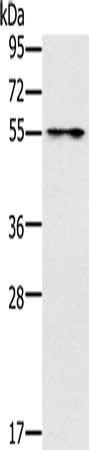 Gel: 8%SDS-PAGE, Lysate: 40 μg, Lane: Mouse intestinum tenue tissue, Primary antibody: CSB-PA484448(PUS10 Antibody) at dilution 1/200, Secondary antibody: Goat anti rabbit IgG at 1/8000 dilution, Exposure time: 3 seconds