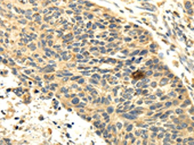The image on the left is immunohistochemistry of paraffin-embedded Human esophagus cancer tissue using CSB-PA679493(SEMA4F Antibody) at dilution 1/35, on the right is treated with fusion protein. (Original magnification: ×200)