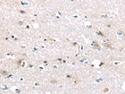 The image on the left is immunohistochemistry of paraffin-embedded Human brain tissue using CSB-PA596755(TTI1 Antibody) at dilution 1/40, on the right is treated with synthetic peptide. (Original magnification: ×200)
