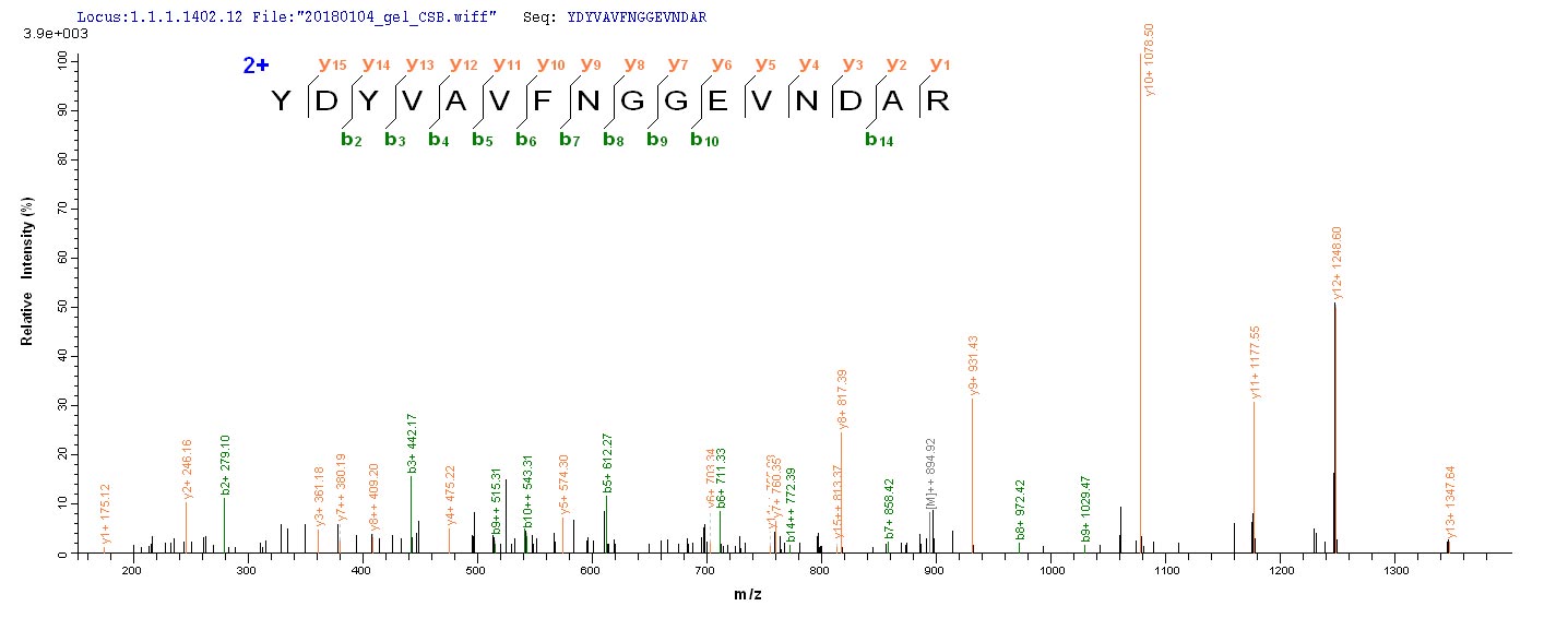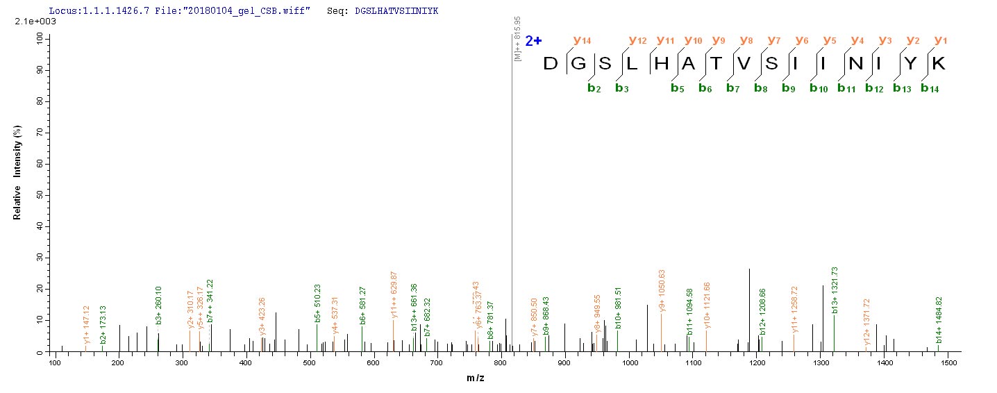 Based on the SEQUEST from database of E.coli host and target protein, the LC-MS/MS Analysis result of CSB-EP017632HU could indicate that this peptide derived from E.coli-expressed Homo sapiens (Human) PCOLCE2.